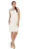 May Queen RQ7937: A sparkly sheath dress with sheer long sleeves, floral embroidery, and a slight train. The dress has a long length, an illusion neckline, and a natural waistline.