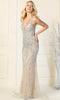 Embrace a radiantly romantic look in the May Queen RQ7947 dress. This gorgeous piece is fully embroidered with a floral design and features a sleeveless V-neckline that is closed with a zipper in the back. The sheer overlay on the full-length trumpet skirt complements the entire garment. Flourish with chic style that mesmerizes the opulent crowd in this gorgeous evening dress from May Queen RQ7947. The model is wearing the Mocha color.