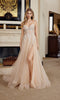 Strapless unique yellow-orange prom gown fully adorned in 3D floral appliques. This dress features a straight neckline on the sheer fitted corset bodice and a midrise open back with a lace-up closure. The dress transitions to a full-length a-line floral textured skirt with a high-leg slit for a breathtaking look.