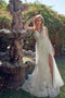 All eyes will be on you in this bead embroidered long cap sleeve dress with A-line skirt by Juliet 684. The dress is adorned with beaded illusion v-neck and sweep train.