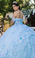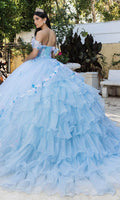 Look immaculately gorgeous in this enchanting May Queen LK247 ballgown. This gown showcases an alluring off-shoulder neckline, complemented by a classy mid-open back that is secured by lace for a sophisticated finish. The tops is beautifully adorned with the combination of floral appliques, sequins, and embroidery, while the glittery bottom displays ruffle designs on the back as well as a majestic cathedral train. You are more than gorgeous when you wear this unbeatable May Queen LK247 masterpiece. Model is wearing Babyblue/Multi color.