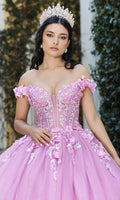 Make it your moment to stand out wearing this May Queen LK262 ballgown. This gown showcases an alluring off-shoulder neckline on an illusion bodice, also featuring boning details for added structure. Its straps are designed with floral appliques, making it look truly appealing. It also exhibits a classy mid-open back that is secured with lace for a graceful finish, while the glittery skirt shows a fabulous cathedral train. This dress is also adorned with sequin and crystal bead designs, making it truly luxurious. You are a mystery in this May Queen LK262 masterpiece. Models are wearing Dusty Blue, and Dusty Rose colors.