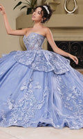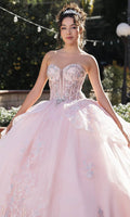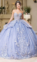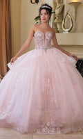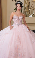 Make an extraordinary statement when you walk in this enchanting May Queen LK268 ballgown. This gown will make everyone stop and stare at your beauty as this showcases an endearing strapless sweetheart neckline on a fitted bodice. It also reveals a classy mid-open back, while the skirt displays a glamorous cathedral train. It is also entirely designed with the combination of crystal beads, embellishments, and glitters, allowing you to own the spotlight on your special night. Enhance your visual appeal in this luxurious May Queen LK268 masterpiece. Models are wearing Blush, and Dusty Blue colors.