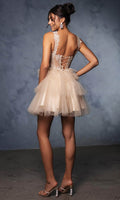 | Details: | Floral, Embroidery, Sleeveless, Fitted, Illusion, Boning, Ruffle, Tiered, Mid-Open Back, Lace Up, Mid-Thigh |