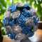 Handcrafted quinceañera bouquet featuring Bahama Blue roses, elegantly finished with silver brooches and butterflies.