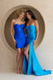 Indulge in the trendsetting style of this Amelia Couture BZ9999S dress featuring a sheer corset top, short strapless design, and A-line layered tiered skirt adorned with delicate beads.