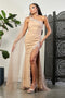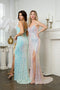 Elevate your evening in this stunning bead-embroidered satin gown, featuring a sheer corset bodice with intricate embroidery, sequins, and beading. The fitted slit skirt adds a touch of glamour, while adjustable tie straps ensure a personalized fit.