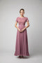 Juno 1078: Fitted Long Short Sleeve Lace Slit Dress