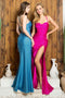 - Floor length fitted skirt with a side leg slit and a sweep train