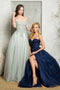 Fitted Beaded Sheer Corset Slit Gown by Juno M1033