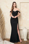 - Floor-length fitted skirt with a side leg slit and a sweep train