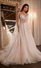 Perfect for making a grand entrance, this elegant wedding gown from Ladivine by Cinderella Divine features a high illusion neckline on a fitted lace-embroidered bodice with an empire waist and cascades down into a full voluminous layered a-line tulle skirt finishing with a sweep train. The dress has delicate lace thin shoulder straps and a v-shaped open back with a zipper closure.