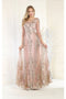 With the May Queen MQ1935B gown, you'll turn heads and make a statement wherever you go. This off-shoulder dress is the perfect choice for a sophisticated and alluring evening, effortlessly highlighting your curves and providing comfort all night long. Adorned with intricate embellishments and delicate embroidery, this masterpiece is a true work of art that will make you the life of the party. The metallic ornate waistband adds a touch of opulence, sparkling with every step, while the subtle glitter and captivating sweep train guarantee a lasting impression.
