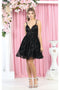 Show off your unique style in the May Queen MQ1966 short dress! This playful dress features an off-the-shoulder design, corset lace up back, and a sparkling fit and flare silhouette adorned with glitter and sequins. Ideal for a fun cocktail party or semi-formal event. (No one will call you boring in this dress.)