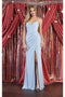 Prepare to dazzle and captivate in this enchanting ball gown by May Queen MQ1974. This captivating creation features a sleek sheath silhouette that effortlessly enhances your natural curves, ensuring a flattering fit for any body type. Delicate wrist ties adorn the long sleeves, adding a touch of femininity and charm. The high slit adds a modern twist to the classic design. Finally, the graceful V-neckline adds a touch of allure, framing your neckline beautifully.