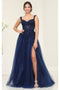 Be the star of the show in May Queen's MQ2051 Sequin Embellished Sleeveless Evening Gown. This stunning dress boasts a cute V-neck and fabulous sleeveless style. Adorned with intricate sequins, glitter, and lovely lace details, it's sure to turn heads wherever you go. With a graceful train, this gown exudes elegance and is perfect for making a statement at Prom, on the Red Carpet, or any other fancy event.