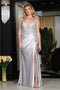Experience the enchanting glamour of the MQ2055 Sequin Corset Lace Gown from May Queen, designed for moments of stunning beauty. The lace appliques on the bustier bodice highlight your figure, while the high slit adds a touch of uniqueness. With spaghetti straps and a fully sequined design, this dress oozes luxury. Whether attending a formal affair or a black-tie event, the sheer corset back and sweep train guarantee you'll make a grand and poised entrance.