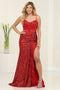 Add some glamour to your look with the stunning May Queen MQ2068 Black-Tie Gown. This eye-catching piece is made of stretch jersey and features a flattering corset design and wrap style. The pleated bodice and high slit add charm to the already captivating ensemble. And with a lace-up back and elegant sweep train, it's the perfect choice for Pageants, Proms, and Red-Carpet Activities.