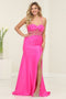 - Details: Corset waist for a figure-flattering fit, Wrap skirt for added elegance, Lace-up back for an adjustable fit, Sweep train for a dramatic flair, High slit for a sultry touch, Spaghetti straps for a delicate and adjustable fit, Pleated bodice for texture and structure, Soft cup padded inserts for comfort.
