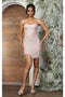 Make a statement with the May Queen MQ2075 Glitter Semi-Formal Short Dress, sure to impress wherever you go. With its dazzling glitter fabric and padded inserts, this sleeveless dress guarantees a flattering shape. The delicate dual spaghetti straps, adorned with beautiful beading, add a touch of elegance to any Prom or Hoco night. Perfect for semi-formal occasions, this dress will steal the spotlight and leave a lasting impression. So embrace the charm and create unforgettable moments in this stunning dress.