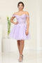 Shine brightly in the May Queen MQ2094 Short Prom Dress. Its sweetheart neckline and glitter bustier bodice add sparkle to your ensemble, while the A-line silhouette creates a flattering timeless look. With exquisite ruffle detailing and flared outline, this dress ensures style and comfort all night long. Elevate your experience with this enchanting piece, complete with embellished beaded patterns and a convenient back zipper closure, ensuring you'll glow with splendor on your Homecoming and Hoco Events.