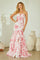 Command an entrance in this stunning strapless gown featuring an elegant V-neck bodice with bow accent and captivating floral print. The fitted silhouette flows into a dramatic floor-length skirt adorned with tiered ruffles and a flattering side leg slit, while the open lace-up back with zipper closure adds sophisticated allure. Crafted from luxurious chiffon with a fully lined interior and built-in bra cup for seamless support, this Amelia Couture masterpiece transitions effortlessly from prom to galas, red carpet events, and formal celebrations. Available in timeless pink and blue, sizes 0-14.