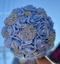 Handcrafted quinceañera bouquet featuring light pink and white roses, elegantly finished with silver brooches.