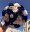 Handcrafted quinceañera bouquet featuring rose pink and ivory roses, accented with gold brooches. Please note that brooch styles may vary depending on availability.