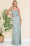 Satin Cowl Neck Tea Length Dress by Amelia Couture 6115