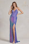 Sequin Print One Shoulder Gown by Nox Anabel R1204