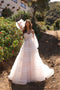 - Skirt: Floor-length A-line skirt featuring soft layered ruffles and a sweep train