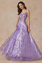 Indulge in a night of dancing wearing this pleated, long strapless gown featuring a sheer corset bodice and a fitted slit skirt. Let the enchanting allure of Juliet 2416 sweep you away as you dance the night away.