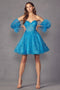 Illuminate the space with your presence in this enchanting short off-shoulder corset dress from Juliet, style 891. The dress boasts captivating glitter embroidery, while the A-line skirt adds a touch of grace and charm, ensuring you shine with radiant elegance.