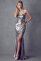 - Details: A long-sleeveless satin gown featuring intricate beadwork, a flattering V-neckline, and convenient side pockets. Perfect for making a statement at any formal event.