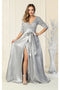 Indulge in glamour with the May Queen MQ2008 Evening Dress, bedecked in detailed beading and boasting an attractive side ribbon accent. The sheer long sleeves and side slit add a contemporary touch, and the v-neckline and gathered waistline flatter your figure. With a sweeping train and open back, this dress is ideal for making a statement on the red carpet or at nighttime occasions. Make a lasting impression in this stunning outfit, designed to elevate your special moment.