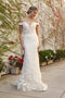 - Off the shoulder deep illusion V-neck bodice secured with cap sleeves