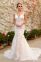 Classical style with boho touch, this Skinny laces v neckline long laced appliques embellished gown from SHEER DREAMZ will take your breath away from every angle. A slightly sheer bodice is layered with natural bands, ventures into a perfect V-back detail with coasting. Thin straps hold that plunge v neck, low v back zipper created by an artful combination of graphic laces tulle and linear detailing. Sheer enclosure train over the fitted outline.