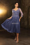 Embrace timeless charm with the May Queen MQ2124, a stunning blend of vintage style and contemporary flair. This exquisite dress showcases a lace applique bodice adorned with delicate sequins, complemented by a soft illusion bateau neckline and sheer quarter-length sleeves. Its glittering skirt flows into an elegant tea-length A-line shape, perfect for formal events and memorable occasions. Available in Black, Dusty Blue, Gold, Rose Gold, and Teal Blue, the May Queen MQ2124 offers a sophisticated sparkle for women who desire grace and allure.