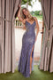 Prepare to steal the spotlight in this embroidered applique long sleeveless tulle dress with a fitted slit skirt by Nox Anabel C1624. Elevate your presence with our stunning long dress, epitomizing grace and allure. The v-neckline exudes sophistication, while a captivating slit adds a touch of drama and allure. The double spaghetti straps lend a delicate charm, perfectly complementing the full applique embroidered tulle material that creates an enchanting and ethereal aesthetic. The crossed lace-up back not only provides a romantic and chic detail but also ensures a perfect and comfortable fit. Embrace your inner goddess and exude confidence in this mesmerizing ensemble, where timeless elegance meets modern sophistication.