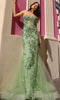 Get ready to turn heads in this long strapless dress by Nox Anabel G1663. Embellished with sparkling beads and a high slit skirt, this full-length gown exudes glamour and sophistication. The waistline is accented with sheer, dazzling stones, creating a couture-inspired look. With a v-neckline and straight back, this dress is both sleek and alluring.