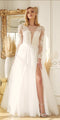 - Skirt: Floor-length fitted silhouette flowing into a graceful sweep train