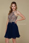 A modern-meets-classic design with this illusion lace dress in complete elegance. Rich lace placed throughout the bodice finishing with an organic trim and Cap Sleeves. Trimmed with overlaid ribbon appliques sprinkled with shining rhinestones, this excellence includes a fantasy neck area on an unpretentiously top sleeved bodice. Elegantly alluring with its sensitive ribbon trimmings, this outfit uncovers a full back and scallop embellished midsection. The sheer layered A-line skirt flares smoothly to float over the knees with its delicately unsettled trim.