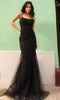 Make a statement at any party with this stunning Nox Anabel C1455 prom dress. Adorned with intricate floral embroidery and sparkling beads, this fitted dress exudes glamour. The off shoulder v-neckline, cap sleeves, and mid-open back create a sophisticated yet alluring look. A daring thigh-high slit adds drama, while the sheath skirt accentuates your figure. With a horsehair hem and sweeping train, this dress is sure to make you stand out in the Black&Nude, Candy Pink, or Lemon color options. Bring elegance and confidence to your look with the Nox Anabel C1455 dress.