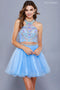 Effortless and classic, this party short two-piece illusion neckline cocktail dress by NARIANNA. A bateau illusion over a straight neckline and embellished meshed closed back with short sleeves create s bohemian chic appeal to this two-piece outfit. The trimmed top is unpredictably beaded with emblem and strip plans on a sheer texture. A band of a similar rhinestone-encrusted plan graces the midsection and explores the eyes to a spout of delicate tulle texture completing a below the knee skirt.