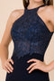 Open immaculately gorgeous in PARTY and PROM dress. This stunning full-length A-line formal evening gown charms with an illusion deep V neckline that splits the sleeveless bodice from the natural waist, with sheer mesh inset for a touch of modesty and spaghetti straps to grace the bare shoulders while holding the bodice. The dress features elegant details of Ruchi?? on the bodice and a rhinestone beaded waistband while the open back allures with a corset lace-up style. Bring on that look of?? beautiful?? sophistication.
