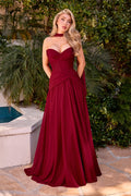 This stunning Ladivine mikado strapless gown delivers sophisticated elegance for your most memorable moments. The sweetheart neckline and corset-boned bodice create a flattering silhouette, while the graceful A-line skirt flows beautifully to the floor. An adjustable lace-up back ensures a custom fit, and the included detachable scarf adds versatile styling options. Fully lined with built-in support, this floor-length gown transitions seamlessly from weddings and galas to formal celebrations. Available in nine gorgeous hues and sizes 2-18, it's the perfect choice for bridesmaids, pageants, or any occasion demanding timeless sophistication and refined beauty.