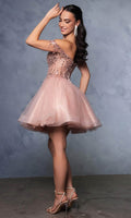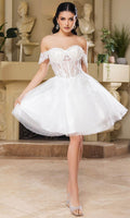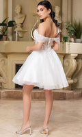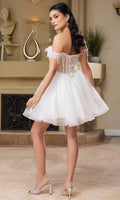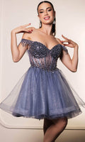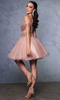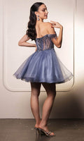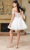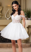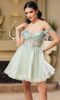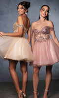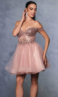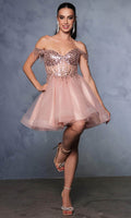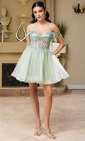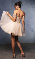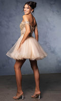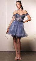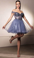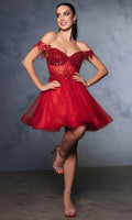 Take their breath away with this stunning May Queen MQ2129 cocktail dress. This dress showcases an alluring off-shoulder neckline on a fitted bodice. It also reveals a classy mid-open back that is secured with lace for a graceful finish. The top is beautifully designed withs sequins as well as fringe designs on the sleeves, while the mid-thigh A-line skirt shimmers with glitters and is made extra appealing thanks to its ruffled hem. This enchanting May Queen MQ2129 masterpiece is sure to make you the center of everyones attention. Models are wearing Champagne, Dusty Blue, Ivory, Red, Rose Gold, Sage, and Silver colors.