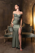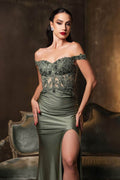 | Details: | Lace Applique Bodice, Sequin, Off Shoulder Sleeves, Ruched Glitter Skirt, High Slit |