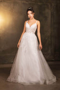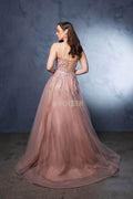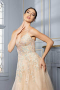 Infuse your evening look with romance and whimsy in this May Queen MQ2165 ethereal design. The sleeveless gown features a sheer lace applique bodice with beaded details, framed by delicate spaghetti straps and a flattering deep V-neckline. The layered tulle skirt flows effortlessly into a soft A-line silhouette, perfect for gliding across the dance floor. Ideal for proms, garden parties, or formal events, the May Queen MQ2165 is sure to capture attention with its fairy-tale charm. Models are wearing Champagne, Ivory, Rosegold, and Sage colors.
