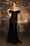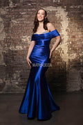 Designed for evenings that demand sophistication, this May Queen RQ8189 gown is the epitome of modern elegance. The gown highlights a mermaid silhouette with a ruched design that defines the waist and hips. The off shoulder neckline and short sleeves frames the shoulders, while a sparkling beaded embellished bust adds a luxurious finish. The May Queen RQ8189 is perfect for black-tie events where making a refined impression is key. Models are wearing Black, Eggplant, Huntergreen, and Royal colors.